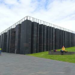 After Carrick-A-Rede we head west for about half an hour, arriving at the Giant's Causeway visitor centre. Lots of tourists, but its able to handle it. The centre is very new and blends in theLeggi altro