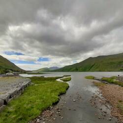 We continue south over a mountain pass and moors. We stop for lunch at Gaynors pub in Leenaun, a tiny village at the head of what turns out to be Irelands only fjord, Killary Fjord. It's also the area where the 1990 movie "The Field" with amongst others Richard Harris, Sean Bean and John Hurt was filmed.Læs mere