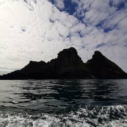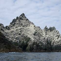 We motor at a fair speed out to Little Skellig Island, taking about an hour. We pass many seabirds and even some dolphins.