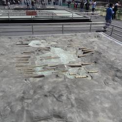 This is the ancient Aztec capital city, built on what was Lake Texcoco, with causeways to the shore. It was built in 1325, and was the capital of the Aztec empire until 1521, when it was captured byEn savoir plus
