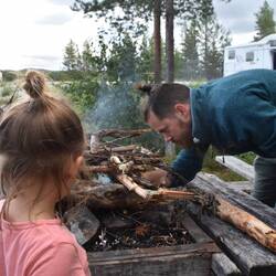 Wir haben wie bereits gestern erwähnt einen Werkstatt Termin bekommen und haben am Stausee in Jokkmokk einen herrlichen Nachmittag und Abend verbracht. Ein kleiner Wald und der see. Wir machten Feuer und genossen es. Es war wunderbar.