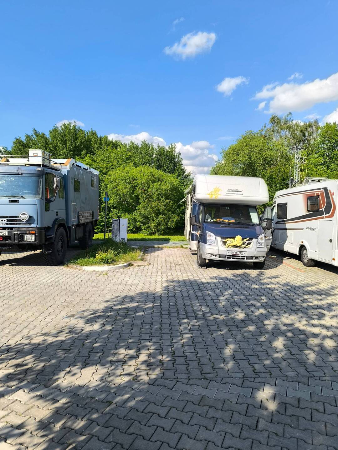 Hier machen wir einfache einen Post. Es war von Anfang an klar, dass wir in Polen nicht lange verweilen werden. Eine Nacht sind wir bei einem Künstlichen See. Da waren wir etwas in einer Misslichen Lage. Christa fuhr so doof in die Regenrinne das wir mit dem Po vom Womo hangen blieben, doch mit Ändu Hilfe und hölzern sind wir ohne Schaden davongekommen.