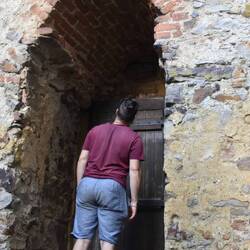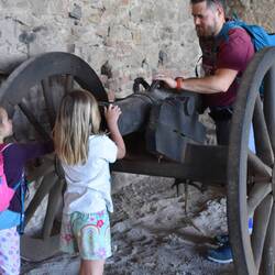 Wir gehen noch in die Burg. Diese ist zur Besichtigung geöffnet mit einem Kleinen Eintritt Geld. Man bekommt ein Blatt in die Hand, auf dem alle Infos stehen. Danach kann man alles frei ansehen und anders als üblich ist kein einziges Verbotsschild aufgestellt. Man kann das Alte Bett anfasse, die Räume betreten und spüren, wie es früher war. Eindrücklich und vor allem mit einer wunderschöner Aussicht. Es windete zwar enorm.