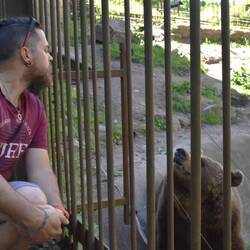 Wahnsinn, in Zoos gibt es immer x Fach Sicherung bei den Bären, hier die Metallstäbe und man könnte ohne Probleme die Hand rein halten.