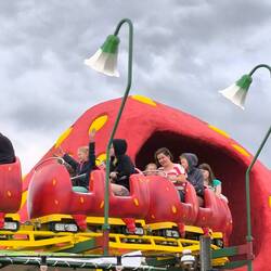Somit war es so überfüllt… Wir sahen den Park beim Vorbei fahren und dachten es sehe kuhl aus. Der Park ist Gratis. Man kann ein Eintritt kaufen und die Attraktionen besuchen. Oder Einzelfahrern lösen. Es wäre ein toller Ort, aber mit drei Eintritten kostet es dann doch wieder 36 Euro. Ändu löste einmal eine Einzel fahrt weil man sehr lange Anstehen muss für die Attraktionen. Im ganzen Park geht es um Erdbeeren, Mais und Bockwurst. Die Bahnen, die alle für kleinere Kinder ausgelegt sind, sind auch in diesen Themen angesiedelt. Das Highlight für uns war die Riesen Scheune voll Mais wo Mann darin schwimmen, Baden und bauen kann wie in einem Bälle Bad. Aber wirklich sehr kuhl.