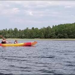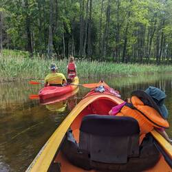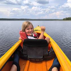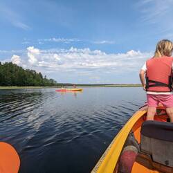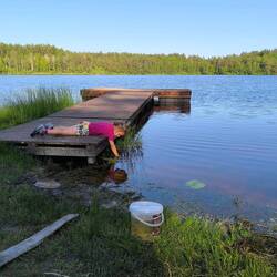 Wir sehen viele, sehr viele Fische. Enten, Rheier, endlos viele Libellen und hören Elche rufen. Wir und die Natur, herrlich.
