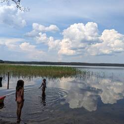 Der erste Eindruck vom Land, man hat das Gefühl in Finnland zu sein. Unglaublich nette Menschen, kaum Womos, viele unendliche Wälder, schöne Felder. Die Strassen schlängeln sich durch die Natur und wir fühlen uns zu Hause. Die vielen schöne Holzhäuser bilden kleine Dörfer. Keine grossen Städte. Viele kleine Seen bilden Treffpunkte für Einheimische und Womos sind willkommen, es gibt viele Gratis Parkplätze die als Camping ausgeschildert sind wo man stehen darf und bis jetzt waren alle extrem schön.