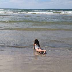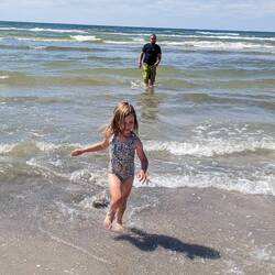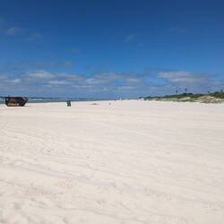 Wir fahren eine Stunde, danach machen wir Mittagshalt am Meer. Hier wird gekocht und danach wollen die Girls baden. Obwohl die Luft gerade mal 19 Grad ist und das Meer 14 Grad. Aber ja wir gehen an den Strand und geniessen den 1h lang. Die Kinder plantschen, Schwimmen ist verboten, wir wissen nicht warum. Aber Drin stehen scheint erlaubt zu sein. Der Sand ist wahnsinnig hell und fein. Einfach wunderschön ist es hier.