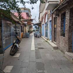Mittags ging dann unser Küchen Wasserhahnen kaputt, der hat ein Mikroschalter der wahrscheinlich defekt ist. Leider gibt es in Griechenland nur 3 Camping stores, alle 4 h oder mehr entfernt. Wir klapperten die vielen Marine läden ab am Hafen, doch alle haben das falsche System. Dann noch Haushaltswarengeschäfte und ein Sanitärinstalateur, alles erfolglos. Aber durch diesen Spaziergang lernten wir die Stadt kennen und vor allem die Altstadt. Wunderschön. Viele Kaffees, Restaurants, die sich alle sehr mühe geben. Überall kleine Lichter, Schneeflocken aufgehängt etc. extrem schön mit den kleinen Gassen und Geschäften.