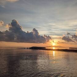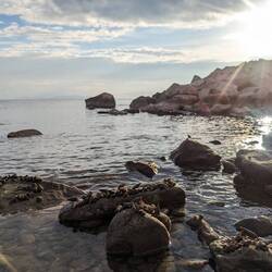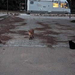 Ylvi badet noch am Strand als das Wetter besser wird. Wir erkunden die Steinküsten um den Platz und geniessen es. Um 17 Uhr kommen immer 3 Füchse auf den Platz die extrem zutraulich sind. Einer bleibt lange bei uns und unseren Nachbarn und streift um uns und kommt wirklich bis so 1,5m nähe. Er hat aber angst vor den Katzen und passt gut auf keine Gescheuert zu bekommen.