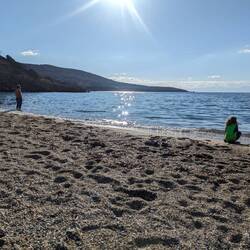 Nach diesem wunderbaren Dorf kamen wir an eine wunderbare Bucht. Wirklich einmalig. Danke P4N. Wir fuhren durch enge Dörfer und sehr Kurvenreiche Strassen, wie wir sie aktuell häufig haben. Die natur ist da einfach unglaublich schön und man ist wirklich oft lange alleine auf den Strassen unterwegs, auf jeden Fall zu dieser Jahreszeit. Wir gelangen nach hügeligem Fahren in eine Bucht. Wir sehen sie schon länger aber das Navi gibt immer noch 15 minuten an, kaum zu glauben das es noch so lange gehen soll. Das Navi hatte aber effektiv recht, denn wir mussten noch den Berg hinunter fahren. Eine Atemberaubende Bucht wartete hier. Mit einigen anderen Campers sind wir hier. Drei sehen wir gar nicht, die stehen auf der anderen Seite, wir stehen mit einem Österreicher und einem Deutschen die sich kennen auf der anderen. Sie sind sehr süss zu den Kids. Es hat einige Katzen und am Abend springen die Kröten um uns herum. Das Meer hat zwar einen groben Stein strand mit grossen abgeschliffenen weissen steinen aber das Wasser ist glasklar und wunderbar Blau. Ein Traum hier. Wir bleiben wieder mal 2 Nächte weil die anfahrt nicht ohne ist, es so schön ist und es sturm gemeldet hat und hier evtl weniger Stark windet. Der wind drehte dann am zweiten Tag auf aber nicht so stark wie er eigentlich sollte. Wir genossen die umgebung und gingen dann nach der zweiten Nacht weiter.Læs mere