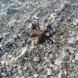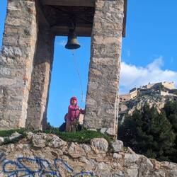 Ort so lange. Geschlagene 5 Nächte. Wir waren lost places anschauen, spatzieren, teile der Burg erkunden, in der Altstadt, Griechisch essen, Gelatie verköstigen, auf dem Markt, beim Tierarzt, Fahrrad fahren in der Stadt, auf dem Spielplatz und am Meer. Zwar waren es wirklich Kalte tage ausser einer, aber es war wirklich schön. Am wärmsten Tag spatzierten wir einen herrlichen Weg entlang der natur und da kam eine schöne Bucht und wir hielten unsere Füsse und Ylvi den ganzen Körper ins herrliche Meer das auch hier einfach wunderbar ist. Plötzlich erschrickt Chrigä weil neben ihr ein Okti ist. Mit dem hat sie im Knöchelhohem Wasser echt nicht gerechnet.