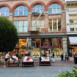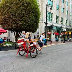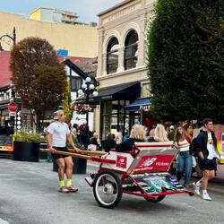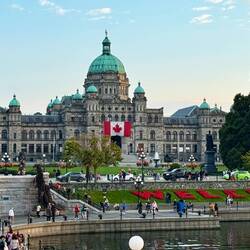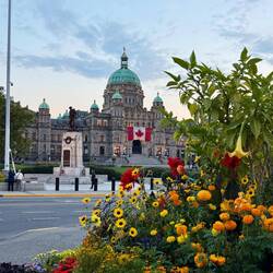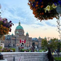 Nach dem Abendessen verließen wir das Schiff und fuhren mit einem Uber nach Downtown Victoria. Die Stadt empfing uns mit üppigen Blumenarrangements, die an jeder Ecke leuchteten und ein richtigLæs mere