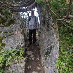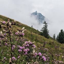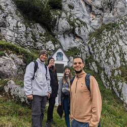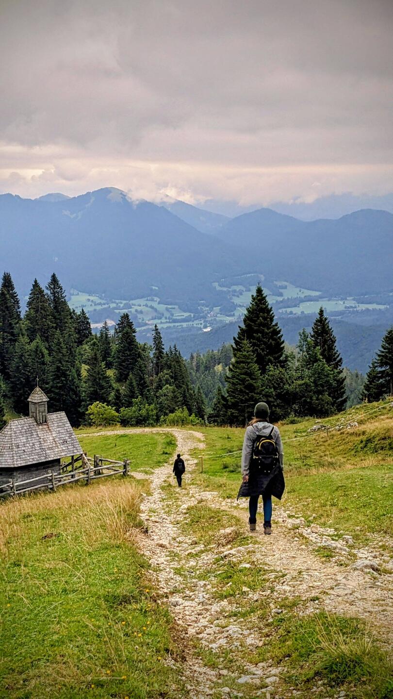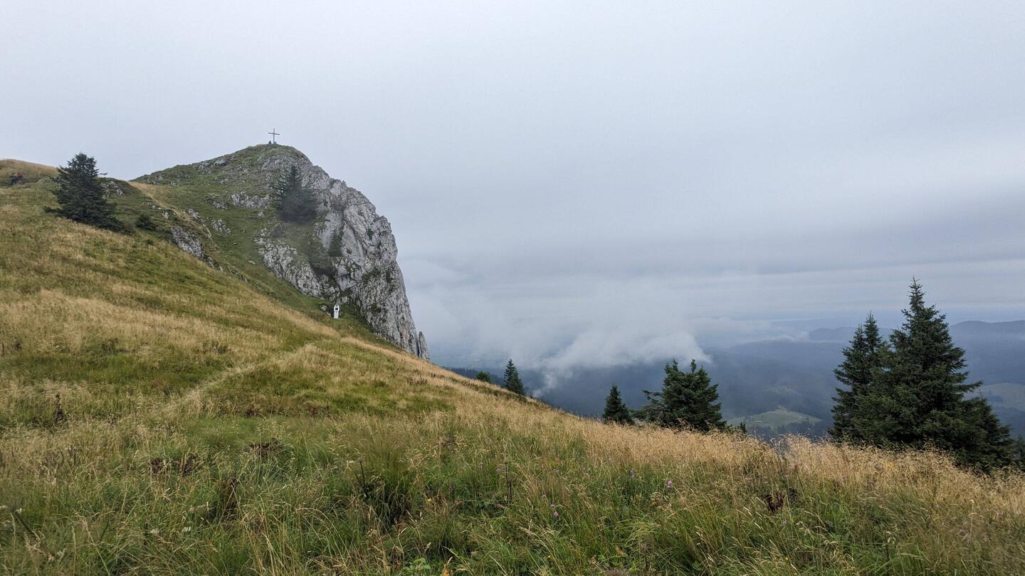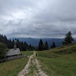 Der nächste Gipfel und eine kleine Kapelle! Hier haben die Wolken mit uns Mitleid gehabt und haben ganz kurz die Schönheit des Ausblicks enthüllt....(zunächst aber nur ganz kurz)