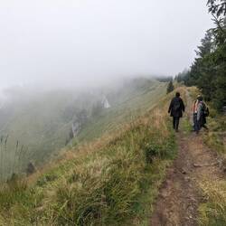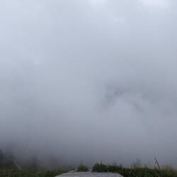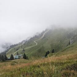 hier angekommen, hier starteten wir unsere Tour (immer noch mit ein wenig Hoffnung, dass wir auf dem Weg mehr sehen können und dass die Wolken aufmachen)