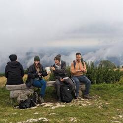 Hier schon Mal die erste Bestärkung zu sich genommen und die Jacken ausgezogen, damit man sie gleich wieder anzieht...
