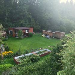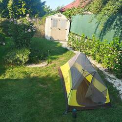 Heute wollten wir wieder wild campen. Die Suche nach einem geeigneten, Ebenen Platz gestaltete sich schwierig. Dann habe ich spontan gefragt ob wir hier im Garten unser Zelt aufbauen dürfen....undLæs mere