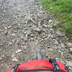 Die letzten 10 km hatten wir einen permanenten Aufstieg auf einem Schotterweg im Wald. Wir sind wirklich platt...
