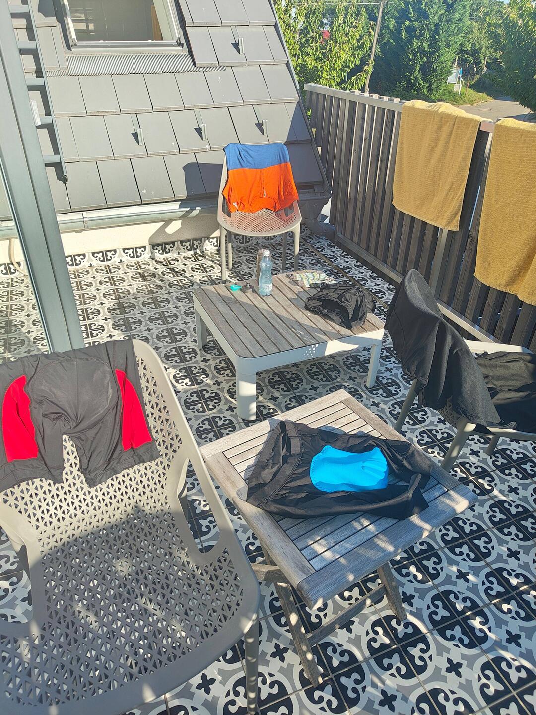 Hier ist echt was los! Fast zuviel... erst Mal baden! Wir sind heute eine schwere Graveltour hochgefahren 750HM. Das hat uns heftig fertiggemacht.