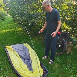 Nachden wir heute morgen unsanft durch einen Regenschauer geweckt wurden (wir hatten das Außenzelt nicht montiert) musste alles sehr schnell gehen!