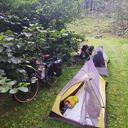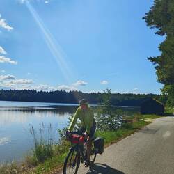 730 gefahrene Rad-Kilometer, ca. 6000HM, zwei Platten , viel Sonne, kein Regen. Jeden Tag im See oder Fluss gebadet. 6 mal wild gezeltet, 3 malLæs mere