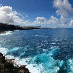 Heute konnte ich den Tag voll nutzen und bin nordöstlich zur Küste runter. Hab mich an den Klippen nördlich bewegt, alles nicht gerade ungefährlich. Es gibt hier keinen Weg bzw. Str, man mussLeia mais