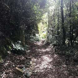 Heute wanderte ich trotz schlechten Wetters 7,5 St. und ca. 27 km und hab über 900 m Höhenanstieg zurückgelegt. Die ganze Gegend besteht aus einen schönen Kiefernwald und ist Naturschutzgebiet.Leer más