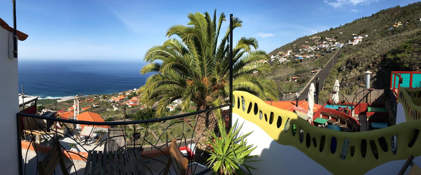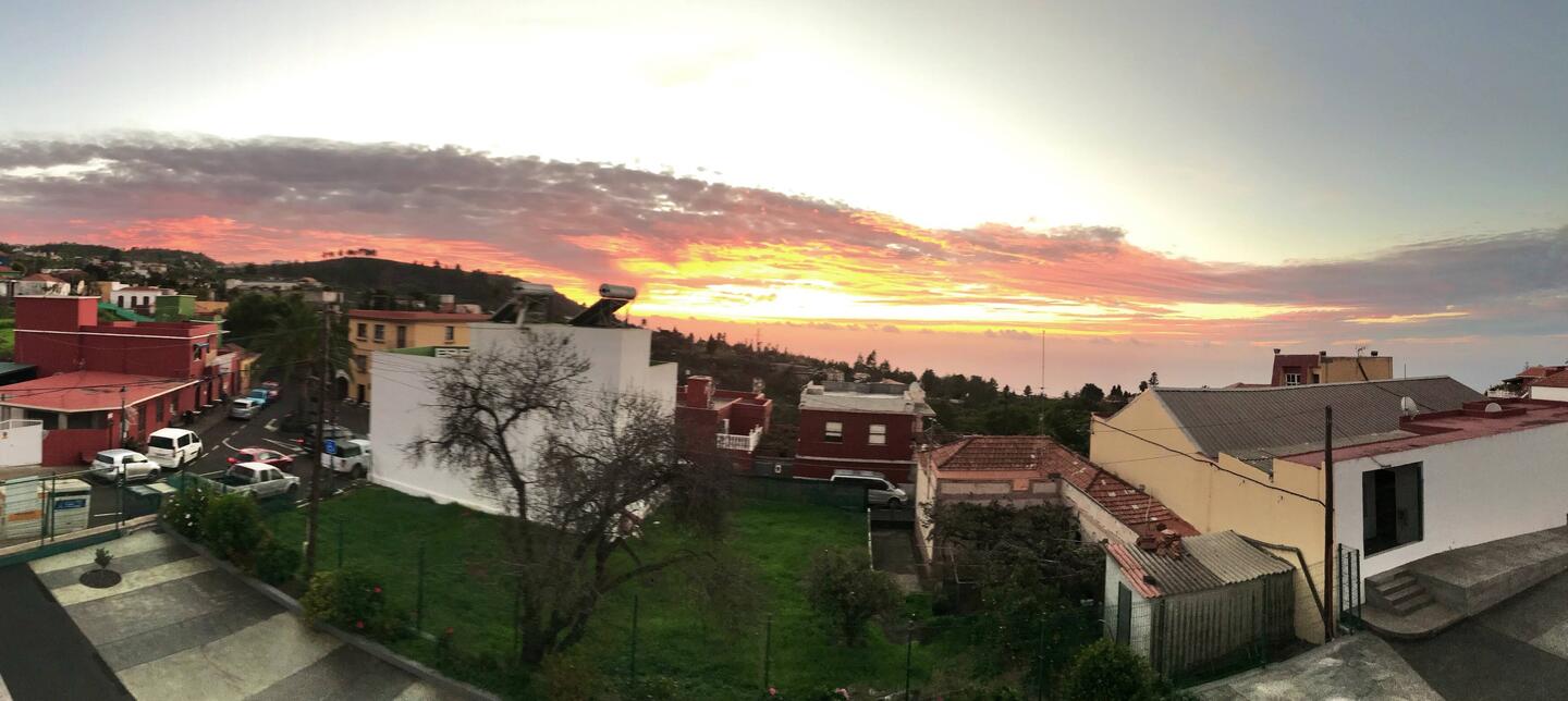 Für das letzte Wochenende in La Palma bin ich 1,5 km westlich nach Las Indias umgezogen. Hier hab ich ein sehr schönes Zimmer mit Blick runter zum Meer, was ca. 500 m tiefer liegt. Die UnterkunftLeer más