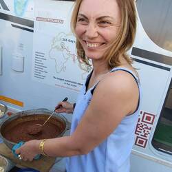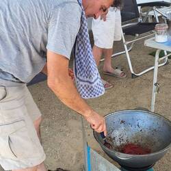 Bevor wir den Krater etwas näher betrachten wollten, galt es erstmal dem Gerd unter die " Arme zu greifen". Die von Claudia an uns geschenkten Maccaroni kamen in den grossen Topf. Gemeinsam wurde unter der Regie von Gerd ein wunderbarer Bolognesesugo kreiert. Bei einem sehr gemütlichen gemeinsamen Abendessen warteten wir auf den Sonnenuntergang um das Höllenfeuer in seiner ganzen Pracht betrachten zu können.