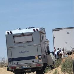 Wie eine Karawane zogen wir heute um 8.00h hinter unseren Local Guides los. Nach der obligaten Tankaktion mit angenehmen Dieselpreisen von 5 Cent per Liter verliessen wir immer mehr die perfekten Strassenverhältnisse. Die Kamele am Strassenrand fragten sich sicherlich was das für eine komische Nomadengruppe ist und weideten geruhsam weiter unter der brütenden Sonne. Die Fahrweise und Strassenverhältnisse, wenn man das noch Strasse nennen kann, erinnerten mich an das Videogame Supermario.😅 Die Hindernisse waren Schlaglöcher, Spurrillen und tiefe Gräben ohne Ende. Ich fragte mich, ob hier der Pelzebube mit seinem Schwanz wütend über den Asphalt geschlagen hat, und mit den Krallen Spurrillen und Risse eingekratzt hat. Mit unserem zum Wüstenschiff mutierten Giotti versuchten wir wie vorgegeben im Konvoi zu fahren. Das vorgegebene Tempo des Turkmenischen "Anführers" mit einem 4x4 Geländewagens schien zu vergessen, dass unsere Fahrzeuge länger, höher und schwerer sind.