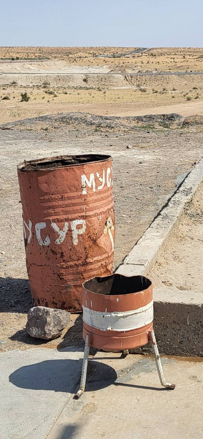 Die Wüste begann sich unerbittlich aufzuheitzen. Karakum, fälschlicherweise als " Schwarzer Sand" übersetzt, bedeutet in Wirklichkeit " grosse Wüste ". Das können wir sehr gut nachvollziehen. Wir fuhren stundenlang auf überwiegend schlechten Strassen durch die einförmige Landschaft,