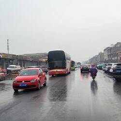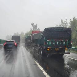 Der schöne Hotelparkplatz in Pingyao erwies sich als Nadelöhr. Bei wasserfallartigem Regen musste ich lauthals Peter beim Ausparken behilflich sein. Bis zu dem Punkt als für mich klar war: "Vergiss es...an diesem PW kommen wir nicht vorbei!" Eine Taxifahrerin schien uns beobachtet zu haben und rief den Wagenbesitzer an. Lachend kam er aus einem Gebäude und parkierte um. Im Morgenverkehr zogen wir bald von dannen. Die einstige Hauptstadt Luoyang lag in 410 Kilometer weiter Entfernung. Diese mussten bei diesem Hudelwetter zurück gelegt werden. Seit ich mich in der Mongolei hinters Lenkrad gesetzt habe, findet es Peter praktisch, wenn wir uns auf so weiten Strecken die Fahrerei teilen. Auf den Autobahnen in China herrscht reger Verkehr mit vielen Lastwagen. Die Fahrregeln gelten etwas anders als bei uns in Europa. Oft gibt es vier Spuren pro Richtung. Diese teilen sich die Pkw's und Lkw's. Es wird von rechts und links überholt, was für uns eher ungewohnt ist. Dazu braucht es viel Konzentration und kann auch sehr ermüdend sein. Langsam aber sicher haben wir uns diesem Fahrstil angepasst...