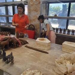 Dies war für uns natürlich ein Muss. Vorgängig besuchten wir die Manufaktur für Terrakotta Krieger Kopien. Bevor wir durch die Verkaufsräume geschleust wurden, gabs von einer Dame eine kurze Führung. Sie zeigte uns anhand von Beispielen mit welchem Aufwand die handgefertigten Krieger hergestellt werden. Erstaunlich, mit welch feinen Details die Figuren gefertigt werden. Je nach Kopfbedeckung oder Rock kann man die Soldaten nach Truppengattung und Rang unterscheiden. Inklusive General und Kaiser.