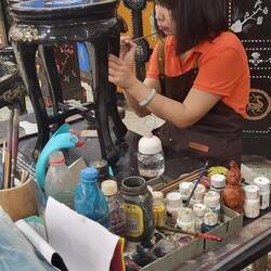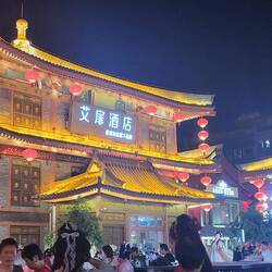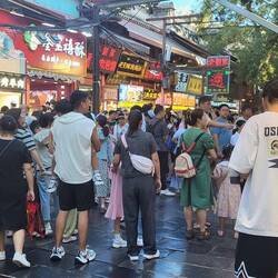 Für ein zwei Stunden erholten wir uns im Hotel. Etwas gestärkt zogen wir nochmals mit den Reiseteilnehmern los. Yong Zhi begleitete uns Downtown ins muslimische Viertel. Während 1,5 Stunden schlenderten wir durch die stark belebten, touristisch angehauchten Gassen und Geschäfte. Danach gings ins Zentrum von Xi'an. Langsam zog die Nacht über die Stadt hinein. Überall brannten bunte Laternen. Menschenmassen, wohin das Auge reichte. Einmal mehr, liessen sich Frauen und Männer in historischen Gewändern ablichten. Dies scheint ein grosses Business in Chinas Städten zu sein.