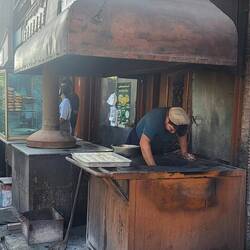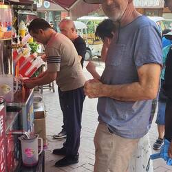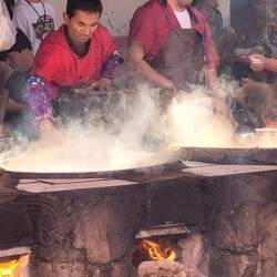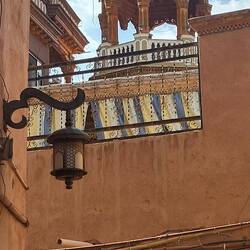 Um 10.30h fand die tägliche Tanzshow vor dem Haupttor statt. Eine Menschentraube hing mit ihren Handys auf Sticks gesteckt, lechzend nach guten Bildern, Kopf an Kopf beieinander. Mir fehlte der Stick, die Körpergrösse und die notwendigen Ellenbogen. Von der Show, die mir eigentlich egal war, sah ich nur die Handys, Köpfe, Rucksäcke und Rollkoffer vor mir. Die Polizei liess uns nicht in die Altstadt hinein, wir mussten diese 20 Minuten im Schweisse aller Zuschauer durchstehen... endlich kam der Moment, wo wir in die Fakestadt hinein durften. Alles auf alt getrimmt, mit den dazugehörigen Protagonisten war täuschend echt.