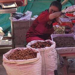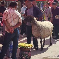 Kurz nach Mittag gesellten wir uns unter all die Händler, Käufer und Touristen. Ein Viehmarkt lebt nicht nur vom Handel mit den Tieren. Ein buntes Angebot an Garküchen, Früchten, Frischfleisch, Kleidern, Messern, Nüssen, Zahnarzt, Kräutern, Musikinstrumenten, Schaffellen...einfach alles was man so im täglichen Leben braucht.