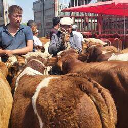 Kein Besuch in Kashgar ist vollständig ohne einen Gang zum Viehmarkt, der jeden Sonntag stattfindet. Da wir uns zufällig am Sonntag in der Stadt befanden, war dies ein Muss! Also gings nach dem Altstadtbummel mit unserem Bus weiter, bis vor die echten Tore von Kashgar. Der Tag auf dem Markt beginnt damit, dass uigurische Bauern und Hirten aus den umliegenden Dörfern in die Stadt kommen. Bis zur Mittagszeit sind dann alle für den Verkauf vorgesehenen Schafe, Kamele, Pferde, Kühe und Esel aus einem Umkreis von ungefähr 50 Kilometern durch die Bazartore getrieben worden.