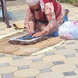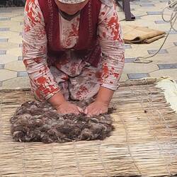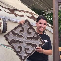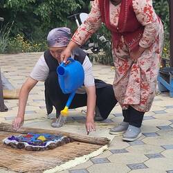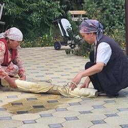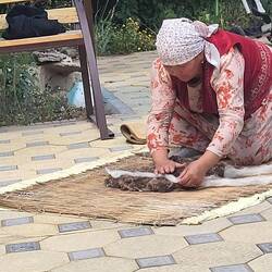 Sie zeigten uns, wie in Kirgistan Teppiche gefilzt werden. Die kurze Präsentation war sehr aufschlussreich und eindrücklich. Natürlich durften die schönen ausgestellten Filzarbeiten auch erworben werden. Vielleicht erwecke ich zu Hause die Filzwolle im Hobbyraum zu neuem Leben und wage mich an einen Teppich, oder ein Seidenfoulard mit Filzblumen. An Inspirationen hat es nicht gefehlt.