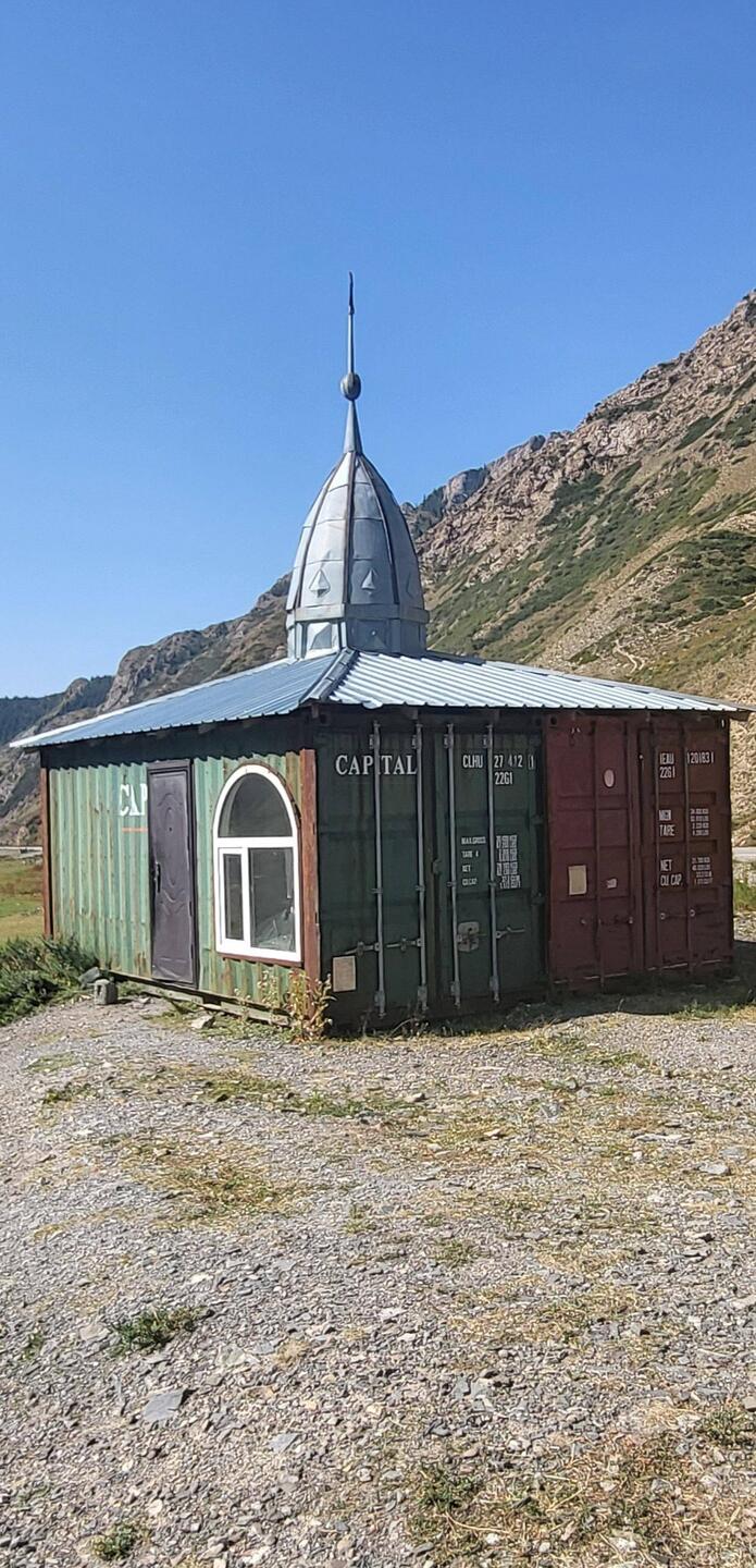 Bei einer kleinen Moschee, ganz aus Kontainern gebaut, hielten wir für eine kurze Rast an. Ein lieblicher Bach meanderte durch die satten Wiesen, weit oben auf einer kleinen Ebene weideten Kühe. Die Idylle war kaum zu übertreffen.