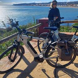 Unsere Fahrräder kommen hier ausgiebig zum Einsatz. 3,5 Kilometer bis ins nächste Dorf - eine ideale Aufwärmstrecke für Peter, für mich ein Training. 😀 Ziel: Alcossebre.