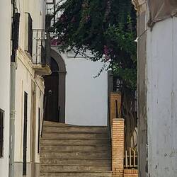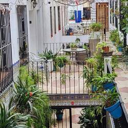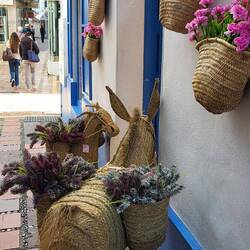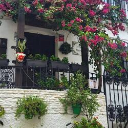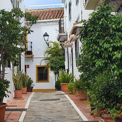 Unser Navi führte uns direkt unterhalb der historischen Stadtmauern des ehemaligen Castillo von Marbella in die Altstadt. Und dort ist man sofort mittendrin im südlich- mediterranen Lebensgefühl: verwinkelte, teils sehr enge Gassen, weiss getünchte Häuser, überall blühende Pflanzen in Töpfen und leuchtende Bougainvillea, die sich an den Fassaden emporranken. Die Altstadt ist überschaubar, eher dörflich, aber gerade das macht ihren Charme aus.