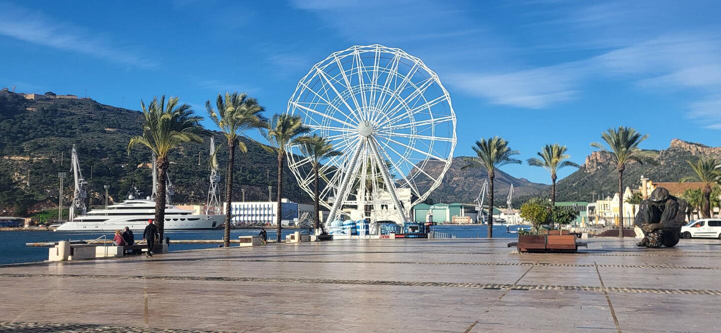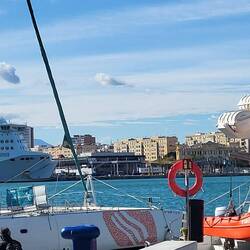 Der heutige Tag begann mit einer Taxifahrt nach Cartagena. Die Wetterprognose versprach stürmische Winde, dafür Sonne satt - eine Mischung, die sich als erstaunlich treffend erweisen sollte. Der Taxifahrer setzte uns direkt im Hafen ab, einem der grössten natürlichen Häfen des Mittelmeers. Schon die Römer wussten diesen geschützten Ort zu schätzen und machten Carthago Nova zu einem der wichtigsten Seehäfen ihres Reiches. Heute liegt der Hafen weitläufig und offen da, eingerahmt von Hügeln, Geschichte und moderner Architektur.
