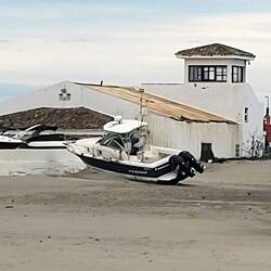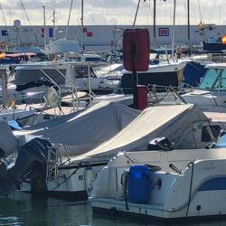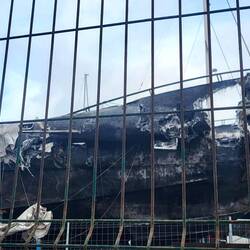 In der Werft dann ein kleines Highlight für Freunde morbider Ästhetik: eine ausgebrannte Yacht, deren Rumpf ein Loch von beeindruckendem Ausmass zierte. Ein maritimes Mahnmal dafür, dass auch sehr teure Dinge gelegentlich einen schlechten Tag haben. Man konnte sich lebhaft vorstellen, dass dieses Boot nun zu einem ausgesprochen attraktiven Preis zu haben wäre - ideal für Optimisten oder Bastler.