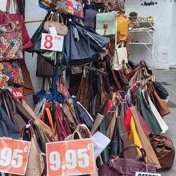 Die zahlreichen Läden bieten alles von Souvenirs über Keramik bis zu Lederwaren. Sehr viele Lederwaren. Die VerkäuferInnen sind freundlich, engagiert und teilweise so anhänglich, dass man sich fragt, ob ein kurzer Blickkontakt bereits als Kaufabsicht gilt. Die Konkurrenz ist hier jedenfalls nicht nur gross, sondern gnadenlos.
