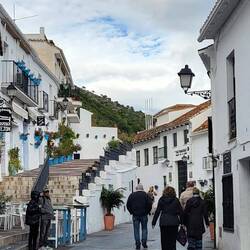 Mijas Pueblo liegt auf 430 Metern Höhe am Hang der Sierra de Mijas und blickt majestätisch über das Mittelmeer. Die Geschichte reicht von iberischen Ursprüngen über römische Zeiten bis zur maurischen Prägung, was man dem Ort bis heute ansieht. Weisse Häuser, enge Gassen, Blumentöpfe - und eine Aussicht, wie aus der Perspektive eines Adlers.
