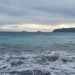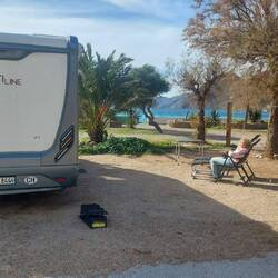 So fanden wir schliesslich einen wunderbar gelegenen Campingplatz bei El Portús, etwas westlich von Cartagena, eingebettet in eine traumhafte Bucht. Kurz sorgte die Info auf der Abrechnung "Naturist Camp" für Skepsis, doch diese erwies sich als unbegründet. Der ehemalige FKK- Campingplatz wurde vor zwei Jahren von der TAIGA-Kette übernommen und wird modernisiert. Nach einem eher speziellen Nachbarn konnten wir glücklicherweise den Standort wechseln und stehen nun direkt am Strand, mit türkisblauem Meer vor uns und Brandung als Einschlafmusik. Draussen kreuzen Frachtschiffe auf dem Weg nach Cartagena, einer geschichtsträchtigen Hafenstadt mit römischen Wurzeln.