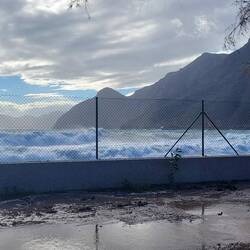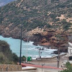 So traten wir früher als geplant den Rückweg an, wieder per Taxi, zurück in unsere Bucht. Dort tobte das Meer. Wellen brachen über die Mauer - zum Glück nicht bis zu unserem Giotti. Die Campingtische standen noch immer felsenfest an Ort und Stelle. Langsam beruhigten sich das Meer und Wind, die Böen liessen nach.