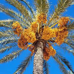 Die Natur rund um uns erwacht sichtbar. Mandel- und Obstbäume blühen um die Wette, Artischocken recken selbstbewusst ihre Köpfe der Sonne entgegen. Auf der Strandpromenade von Torrenostra liegen vereinzelt reife Datteln am Boden, während oben in den Palmen noch goldglänzend die unreifen Früchte hängen.