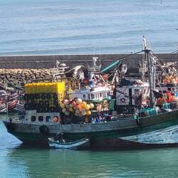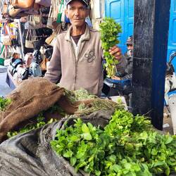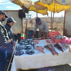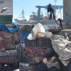 Nach dem Medina Besuch zieht es Peter in den Hafen. Ein buntes, lautes und geruchintensives Treiben begleitet uns. Überall werden frische Fische angeboten, welche auf Wunsch gleich zubereitet werden. Um sie zu geniessen, stehen Tische bereit.