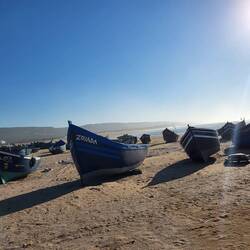 Dieser Artikel stimmt mich sehr nachdenklich. Der schöne Strandspaziergang zum nahe gelegenen Fischerörtchen Zaouia Akermoud kriegt einen fahlen Nachgeschmack. Sieht es doch sehr runtergekommen, wie aus einer anderen Zeit, oder einer Filmkulisse aus....die Menschen fröhlich und sehr freundlich. Einladend und zufrieden. Die Boote blau bemalt wie der strahlende Himmel.
